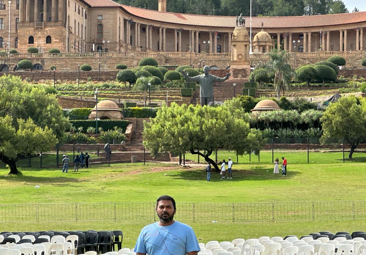 Here, I’m posing with the statue of Paul Kruger, a prominent figure in South African history, located in Church Square, Pretoria. Paul Kruger, also known as “Oom Paul,” was the President of the South African Republic (Transvaal) and a key leader during the First and Second Boer Wars. The equestrian statue was erected in 1954 and serves as a reminder of the country’s complex and multifaceted past. The square itself is a historic landmark surrounded by beautiful and architecturally significant buildings, reflecting the rich heritage of Pretoria.
