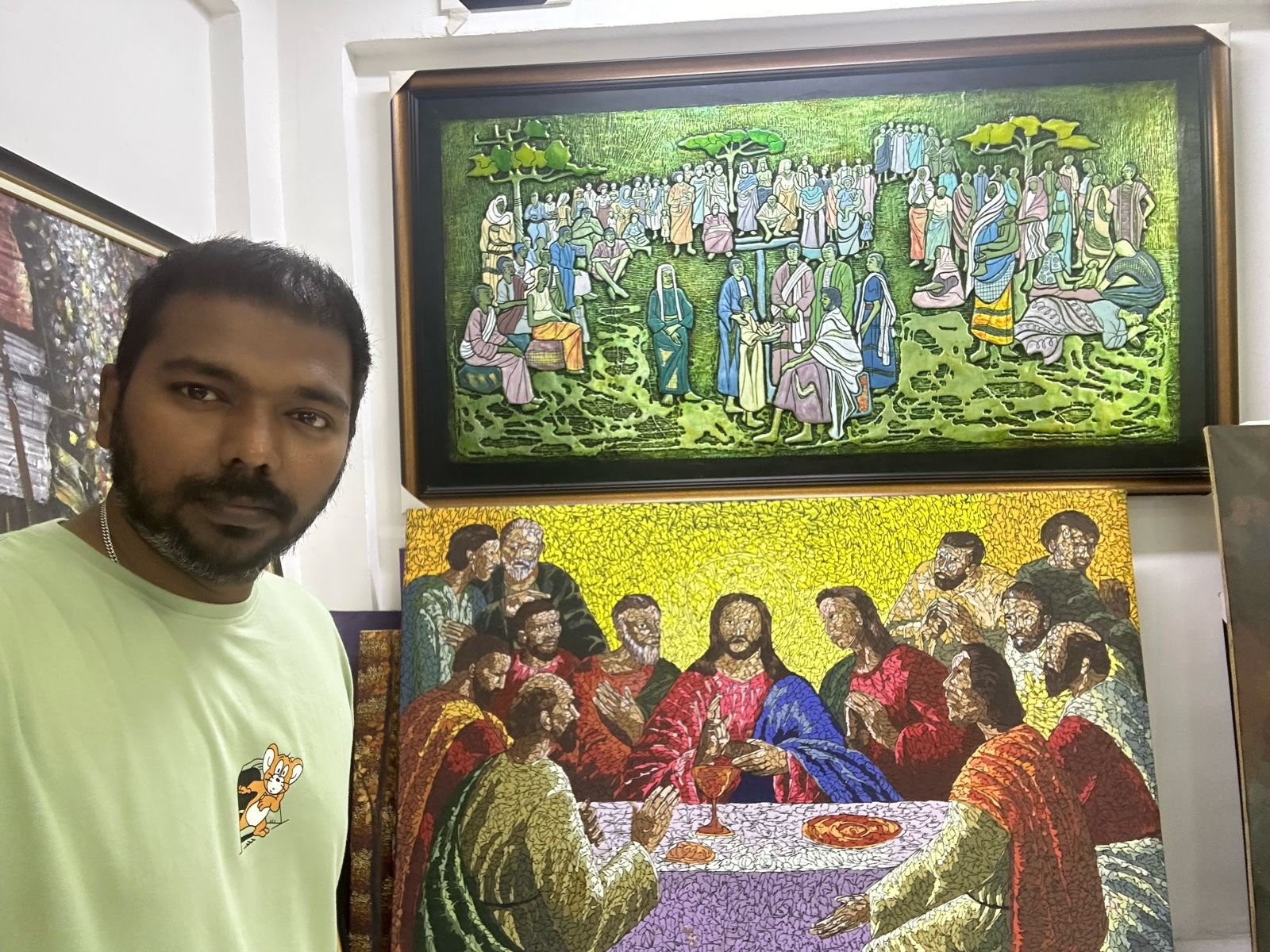 One of the highlights of my trip was exploring the incredible world of Nigerian art. In the first photo, you can see me standing in front of two striking paintings. The upper painting depicts a gathering of people, possibly illustrating a historical or cultural event, with vibrant colors and dynamic figures. Below it, there is an evocative representation of the Last Supper, showcasing the artist’s unique interpretation and style. Nigerian art is a profound reflection of the country’s rich history and diverse culture, and these artworks are perfect examples of that heritage.